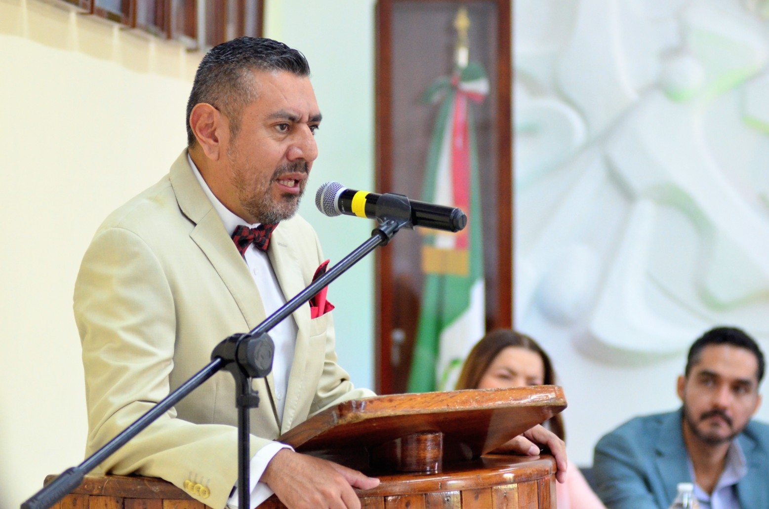 Luego de la lectura del orden del día por la secretaria general Karla Cisneros Torres, los honores a la bandera y la entonación del himno nacional mexicano a cargo del cuerpo de seguridad pública, la alcaldesa dirigió a los presentes el mensaje oficial.