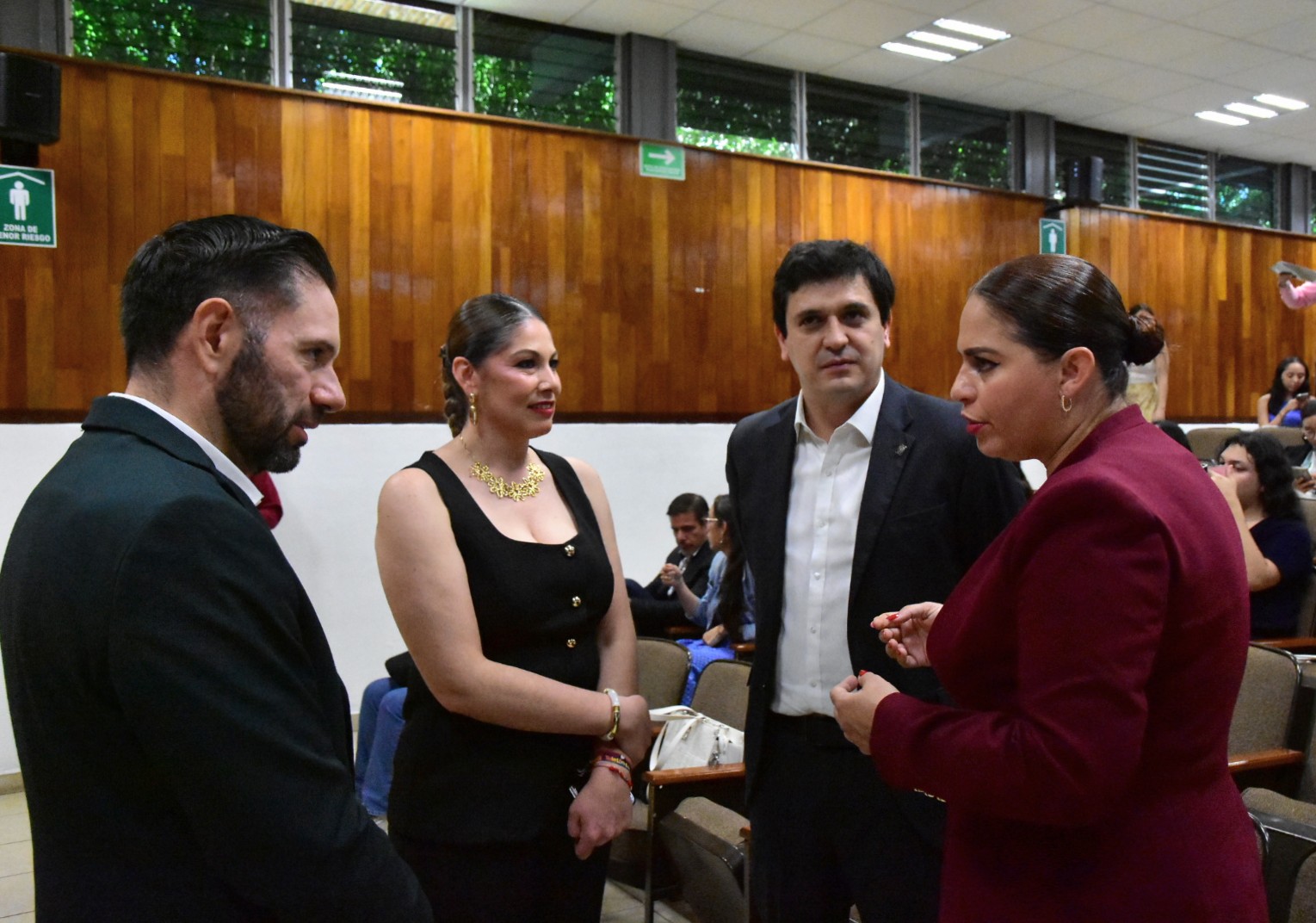 El presídium estuvo integrado por Magali Casillas Contreras, presidenta municipal de Zapotlán el Grande; José de Jesús Chávez Cervantes, secretario académico; en representación del Rector del Centro Universitario del Sur, Dante Jaime Haro Reyes; Isis Edith Santa Sánchez, directora de Medio Ambiente y Desarrollo Sustentable de Zapotlán el Grande; y Oscar Iván Delgado Nungaray, secretario de la División de Ciencias Sociales y Humanidades.