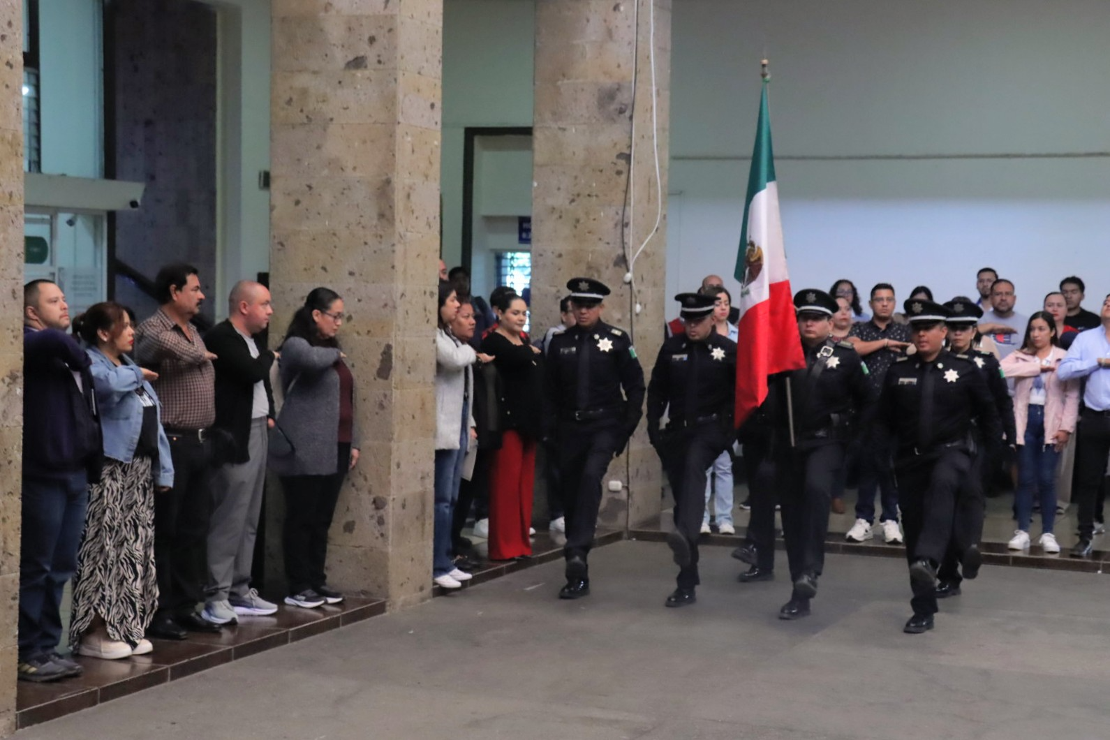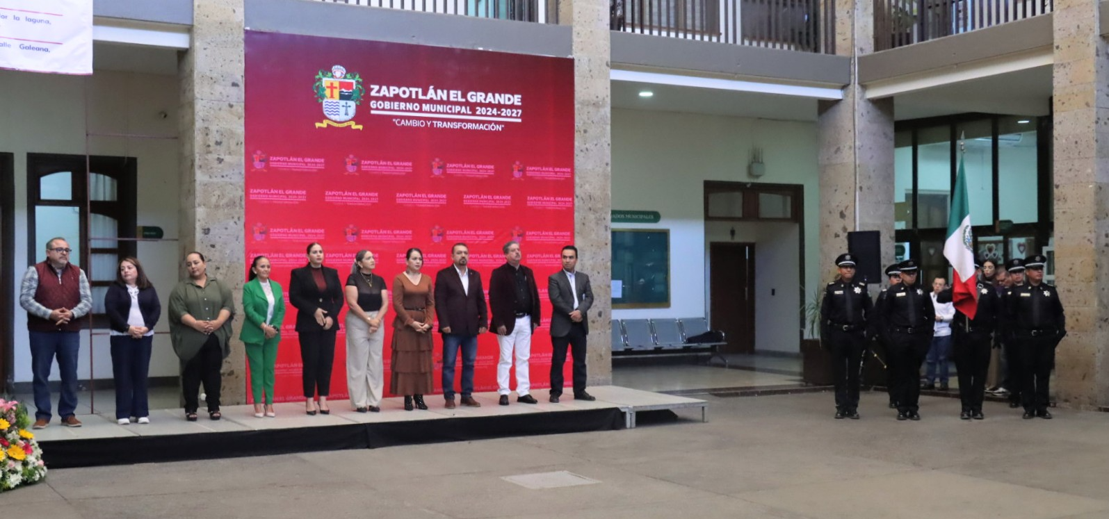 El acto cívico se celebró en el Patio Central del Edificio de Presidencia, en donde se realizaron honores a la bandera por parte de la Escolta de Seguridad Pública, luego se entonó Himno Nacional Mexicano y se hizo el juramento al lábaro patrio a cargo de la regidora Marisol Mendoza Pinto.