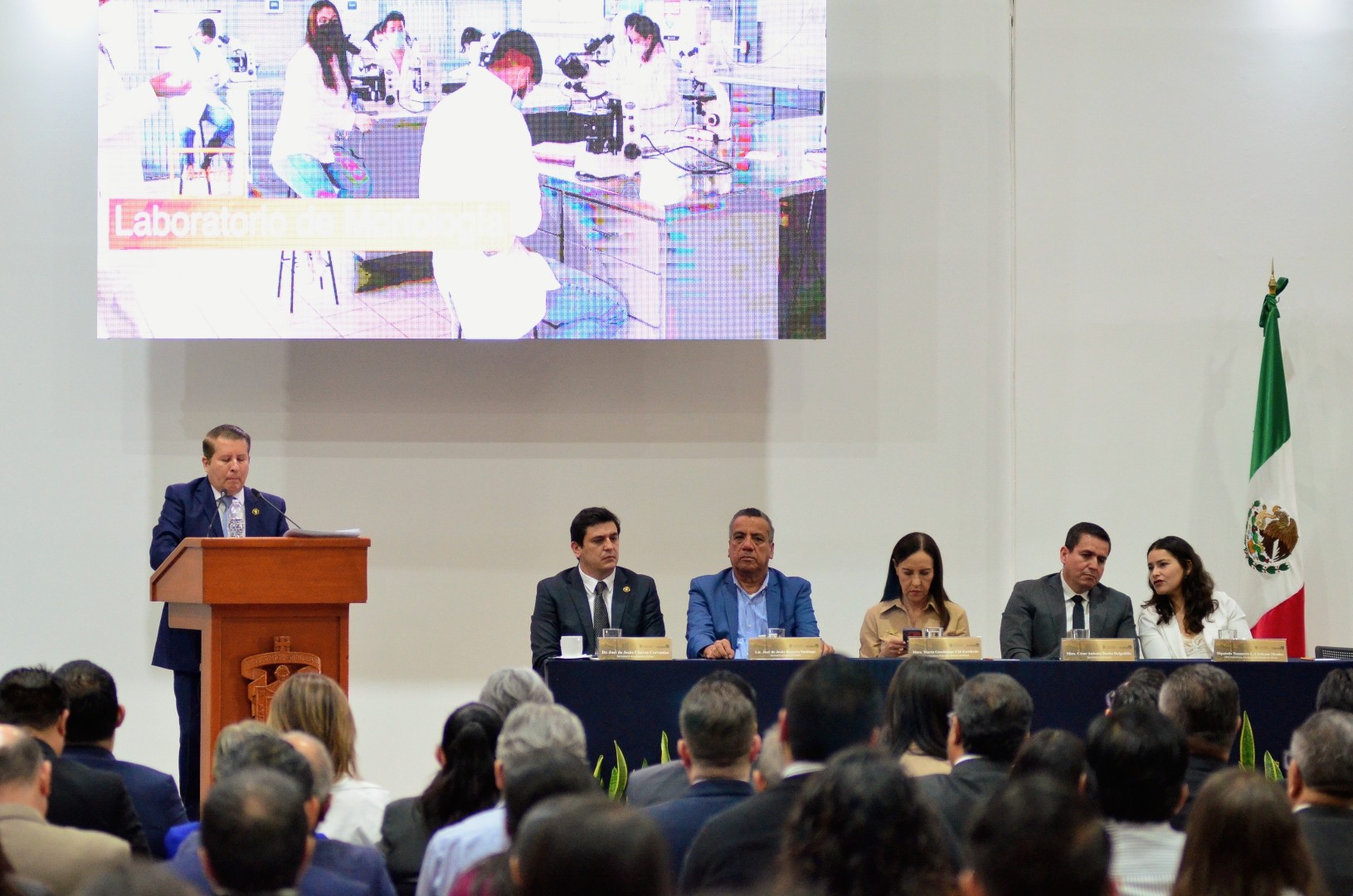 Dante Haro destacó también el equipamiento y modernización de espacios de enseñanza aprendizaje; pues aseguró, la formación profesional depende también de las condiciones materiales, por lo cual se modernizaron 6 laboratorios que benefician a más de 3 mil 800 estudiantes de las carreras de medicina, enfermería, nutrición, cirujano dentista, cultura física, seguridad laboral y veterinaria.