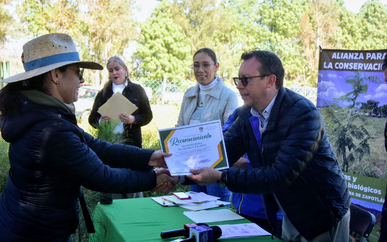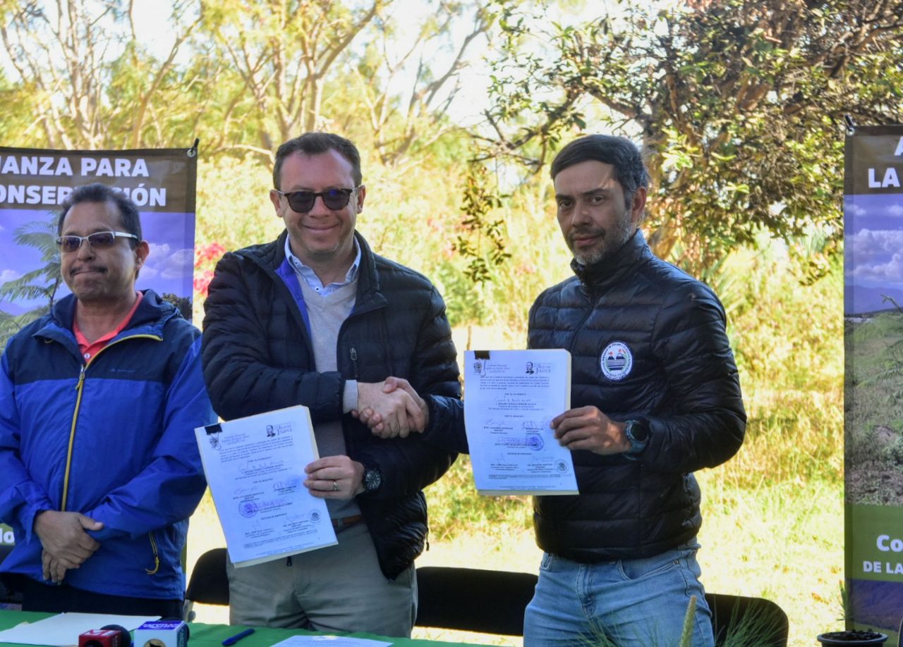 Finalmente, se hizo la firma de convenio por parte de los representantes del Gobierno Municipal, el Patronato del Nevado de Colima y Cuencas Adyacentes A.C., Driscolls y Reforestamos México, además de la entrega de reconocimientos a los participantes.