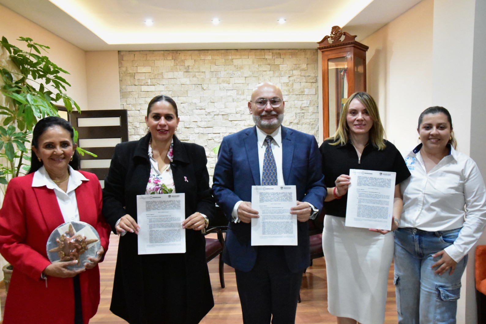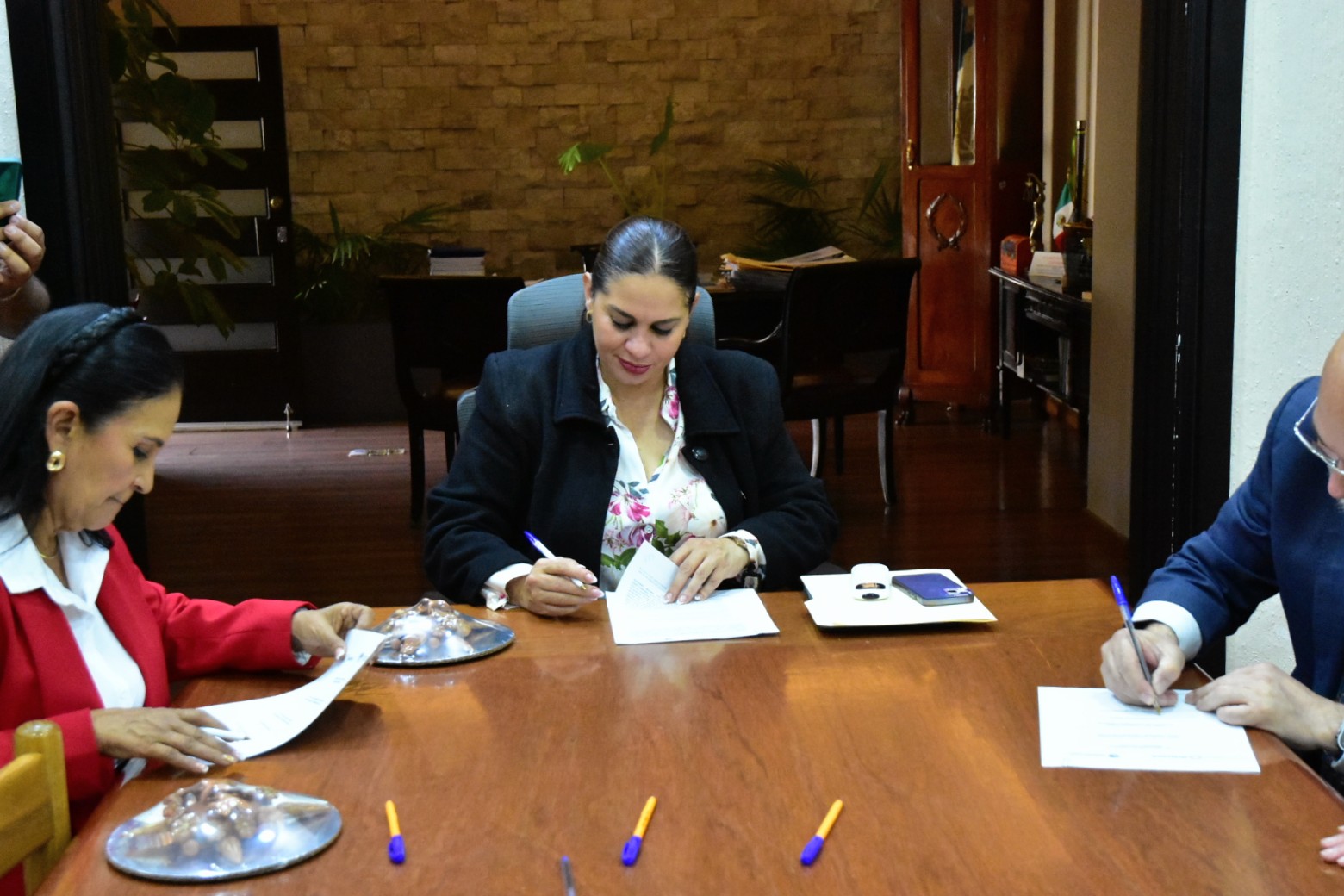 La firma de convenio se realizó en Palacio de Gobierno Municipal, contando con la presencia de la alcaldesa Magali Casillas Contreras; la regidora Marisol Mendoza Pinto; y el rector de la Universidad Innova, Héctor Luis Navarro Pérez; quien estuvo acompañado por parte de su equipo de colaboradores intedrado por Elizabeth Zamudio, Luz María Úrzua Herrera, Evely Galindo y Verónica Castillo.