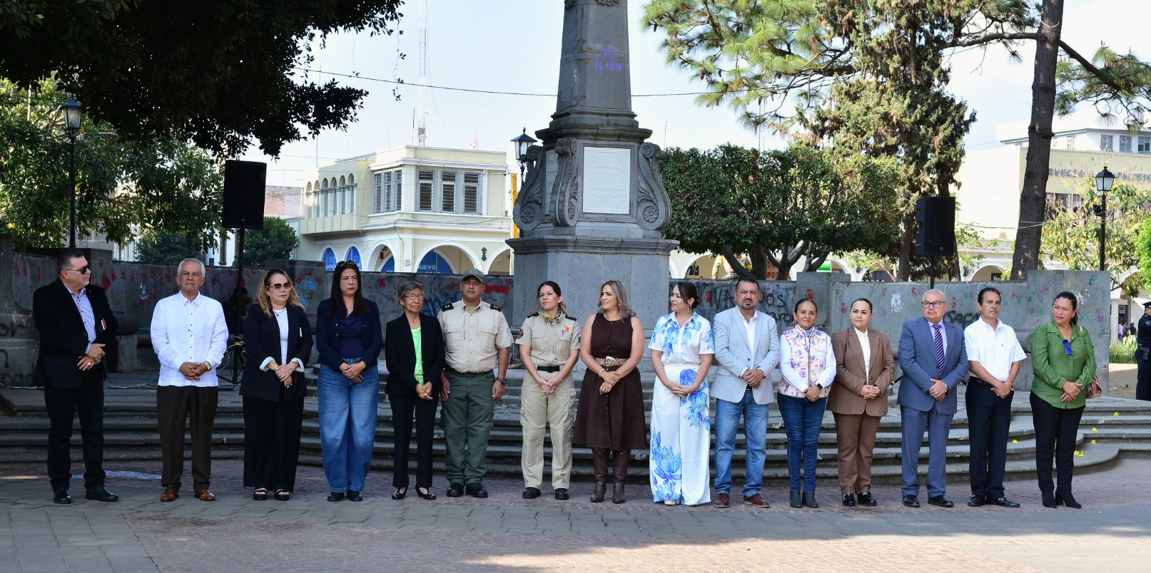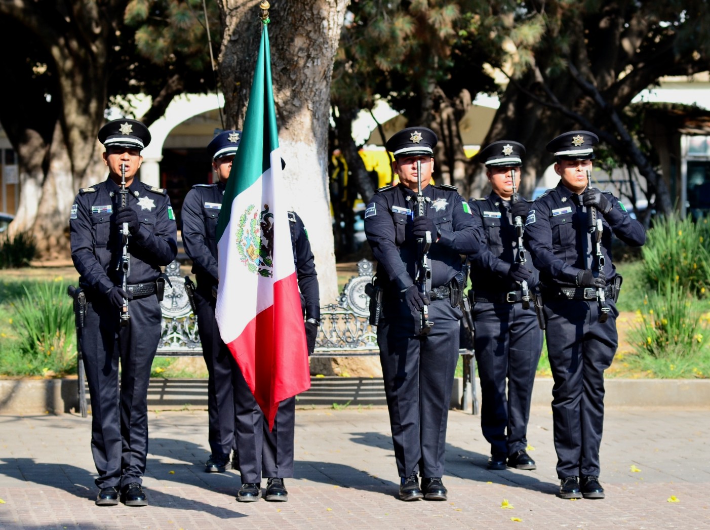 La ceremonia se realizó en la explanada cívica “Benito Juárez” del Jardín Principal, dando inicio con Honores a la Bandera a cargo de la escolta de Seguridad Pública Municipal y la Entonación del Himno Nacional Mexicano.