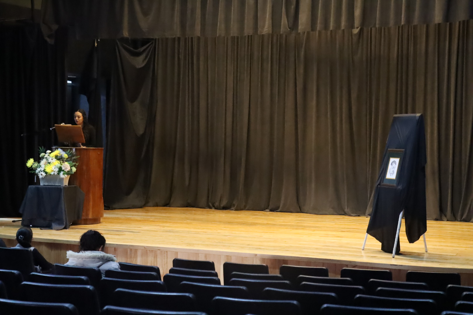 La regidora Marisol Mendoza Pinto, en representación de la presidenta municipal Magali Casillas Contreras; acompañada por Aurora Cecilia Araujó Álvarez, regidora; Samuel Villalvazo Solano, jefe de Cultura; y Antonio Lara, director del Centro de Bachillerato Tecnológico Agropecuario (CBTA); encabezó este homenaje.