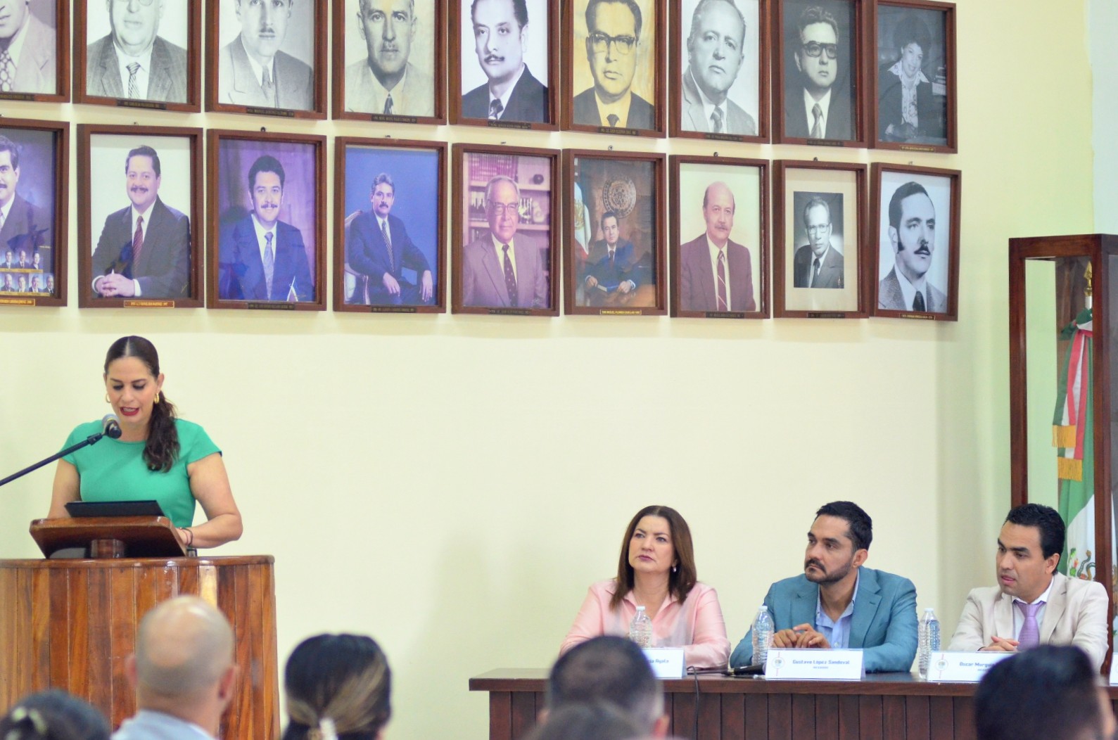 Luego de la lectura del orden del día por la secretaria general Karla Cisneros Torres, los honores a la bandera y la entonación del himno nacional mexicano a cargo del cuerpo de seguridad pública, la alcaldesa dirigió a los presentes el mensaje oficial.