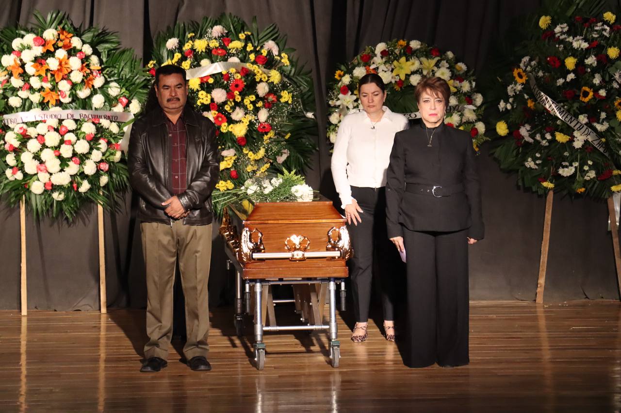 Fue en el escenario del Auditorio “Consuelito Velázquez” de la Casa de la Cultura, recinto que albergó la pasión, el amor y entrega del maestro Ramón Olmedo Neaves, que alumnos, amigos, compañeros, familiares y autoridades municipales y locales, se reunieron para dar el último adiós, mostrando respeto y admiración a quien forjó a generaciones el amor por el teatro.