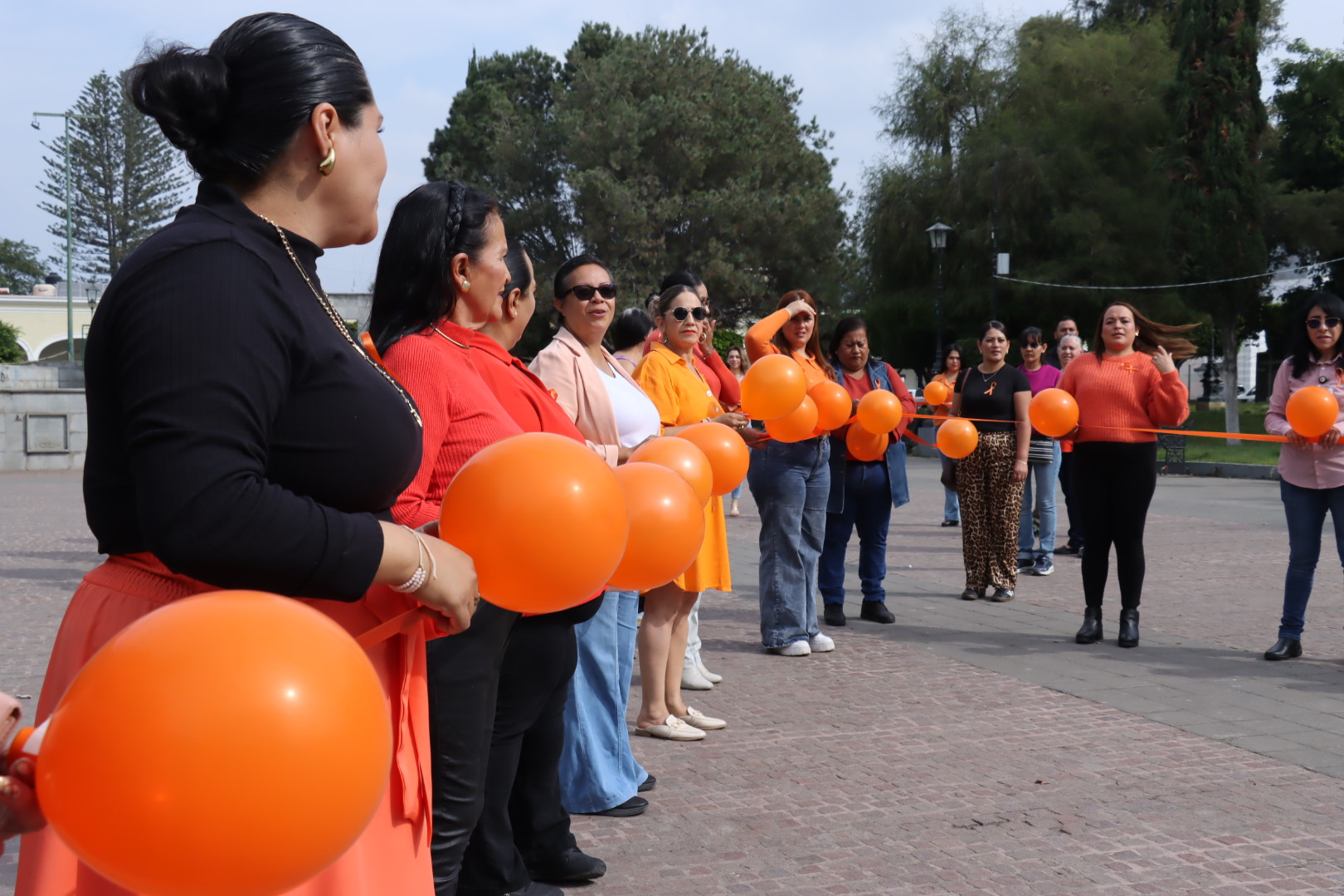 Por esta razón, y refrendando el compromiso con las mujeres del municipio, compañeras y compañeros del gobierno municipal, encabezados por la regidora Marisol Mendoza Pinto, formaron un lazo representativo a esta fecha y leyeron el pronunciamiento “Juntas y Juntos por la Eliminación de las Violencias contra las Mujeres”.
