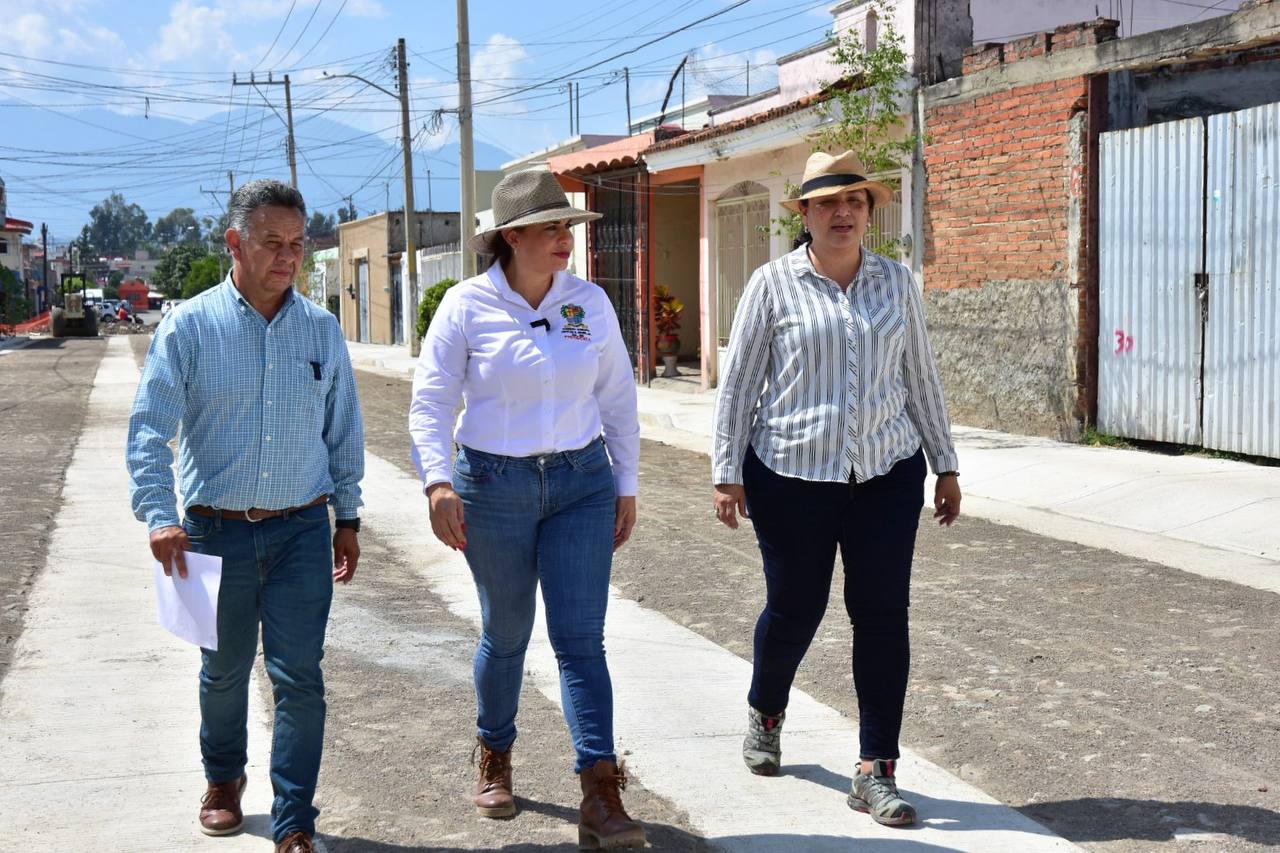 La presidenta municipal, en compañía de Miguel Ángel Barragán Espinoza, Director de Obras Públicas, y Miriam Salomé Torres, Directora General de Gestión de la Ciudad, supervisó el avance de estas obras, reafirmando su compromiso con la calidad y el cumplimiento de cada intervención.