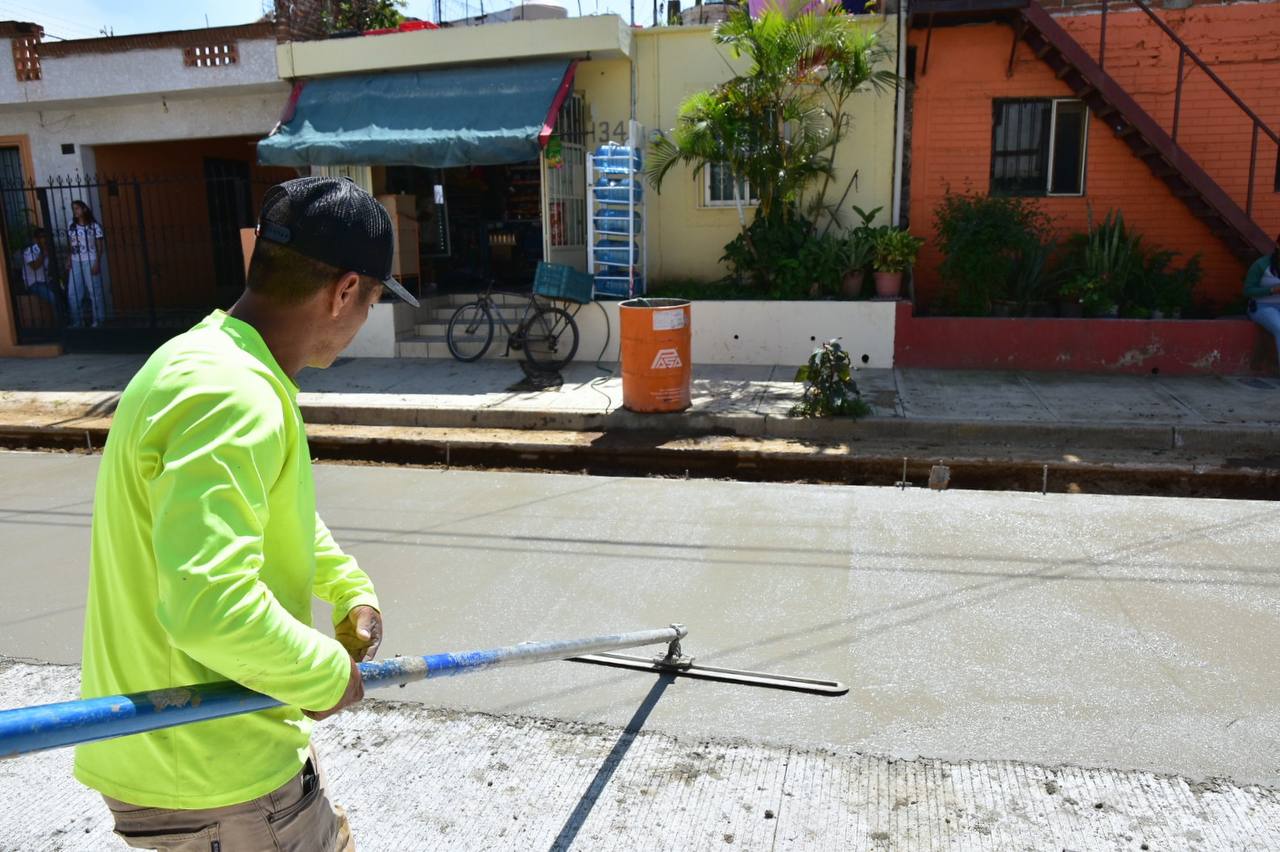 Asimismo, se avanza en la rehabilitación integral de la calle Parcela, en la colonia Ejidal, donde se trabaja en la colocación de empedrado, huellas de rodamiento de concreto, banquetas y machuelos, con una inversión de 2 millones 657 mil pesos.