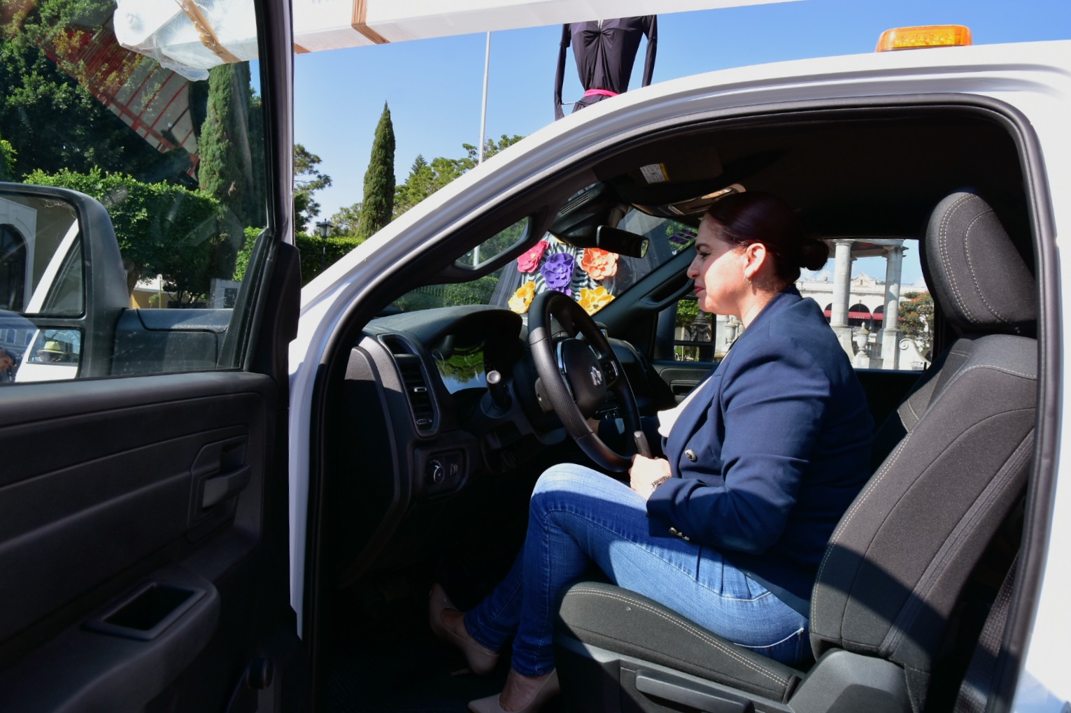 Acompañada por Federico Ochoa Castrejón, director general de Servicios Públicos; José Antonio Olivo Ramírez, jefe de Alumbrado; Georgina Romero Torres, jefa de Patrimonio; y Vicente García Juárez, contralor; la alcaldesa informó que esta nueva unidad tipo pelicano tuvo un monto de 2 millones 194 mil pesos.
