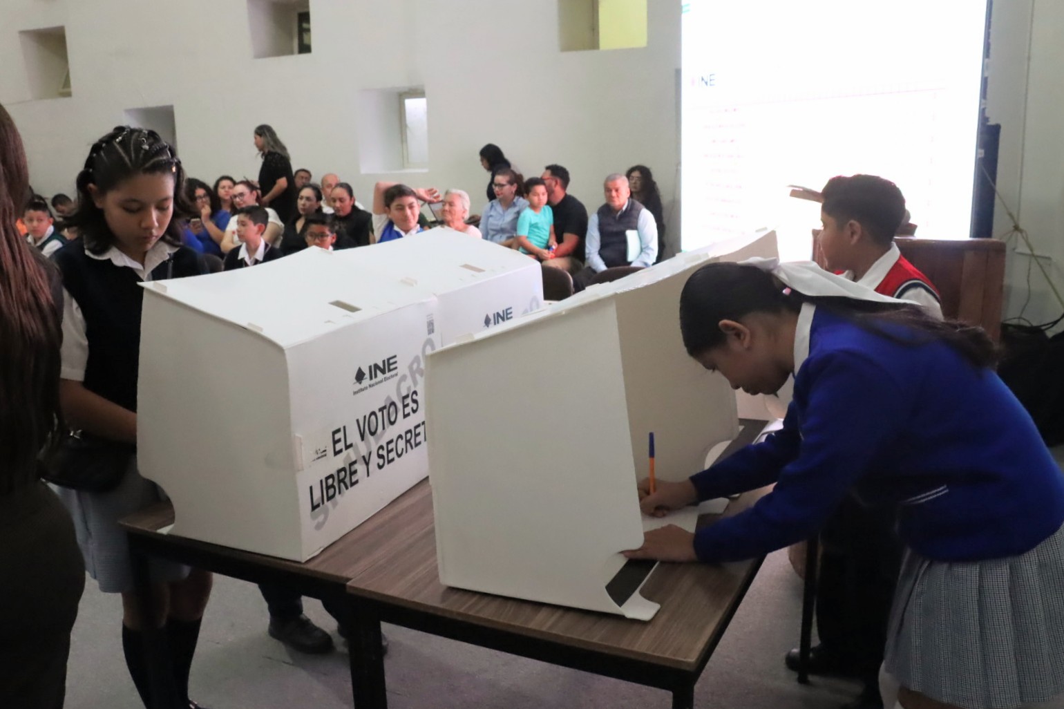 Al finalizar la presentación de cada una de las propuestas se llevó a cabo el escrutinio y cómputo de las votaciones hechas por las y los niños participantes, quienes calificaron con 3,2 y 1 puntos las que consideraron las mejores propuestas.