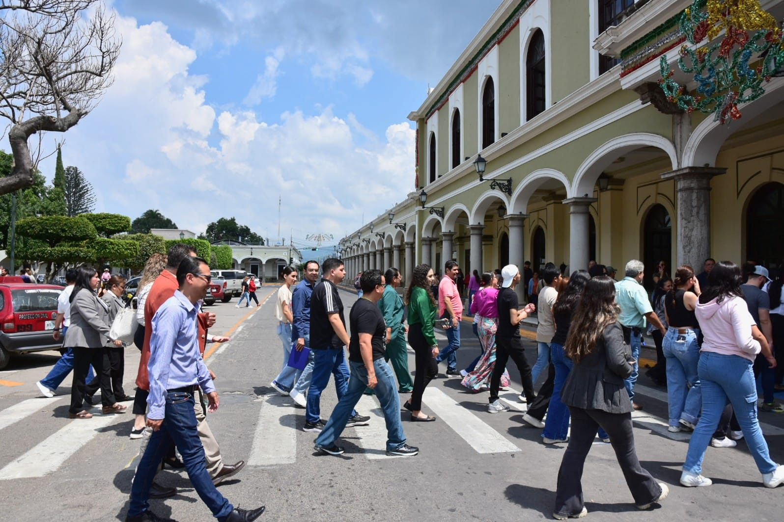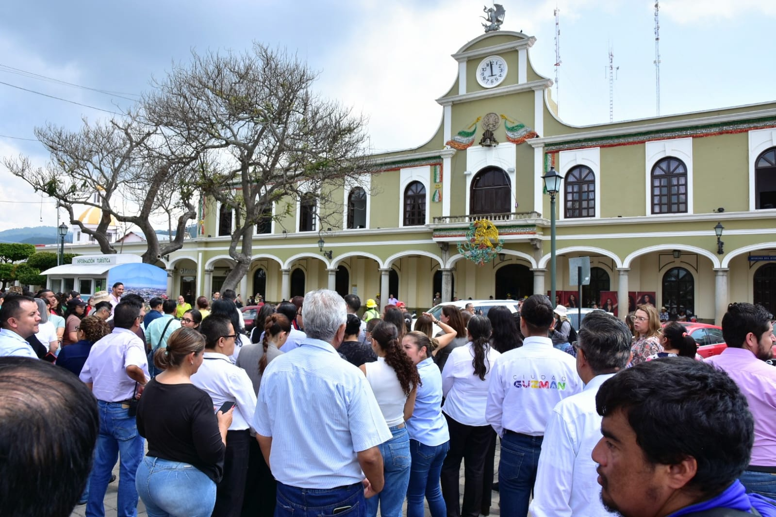 En punto de las 12 del día, la alarma sísmica de Palacio Municipal comenzó a sonar por lo que servidores públicos que se encontraban dentro del edificio procedieron a la evacuación y se dirigieron al jardín principal.